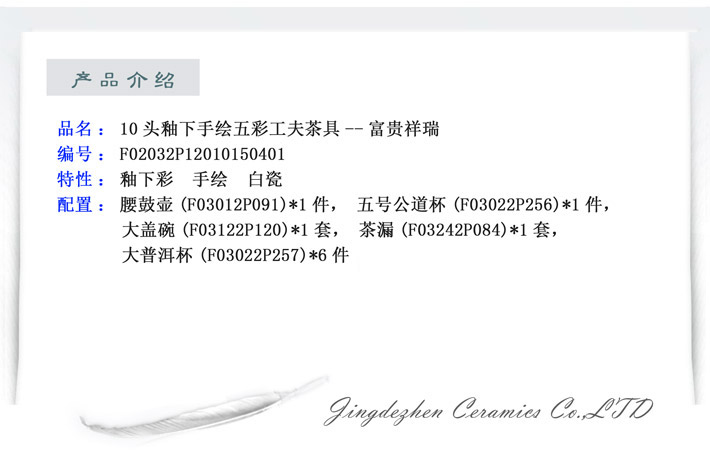 10頭釉下手繪五彩茶具富貴祥瑞