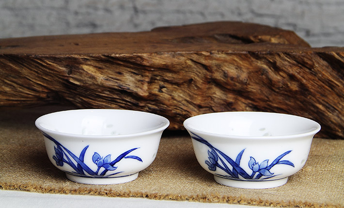 8頭玲瓏半刀泥青花工夫茶具蘭花
