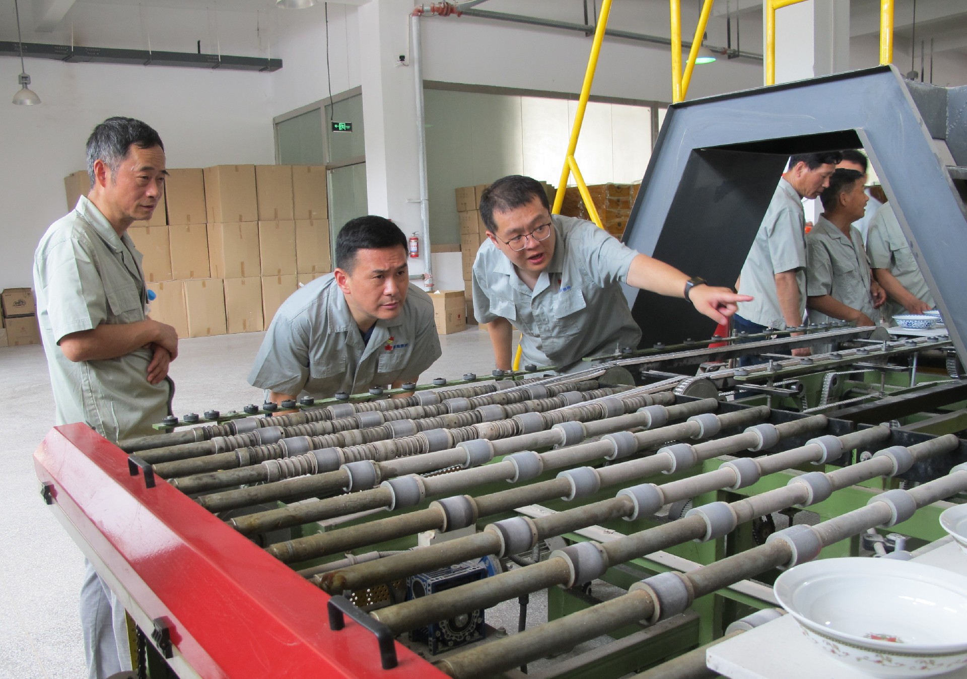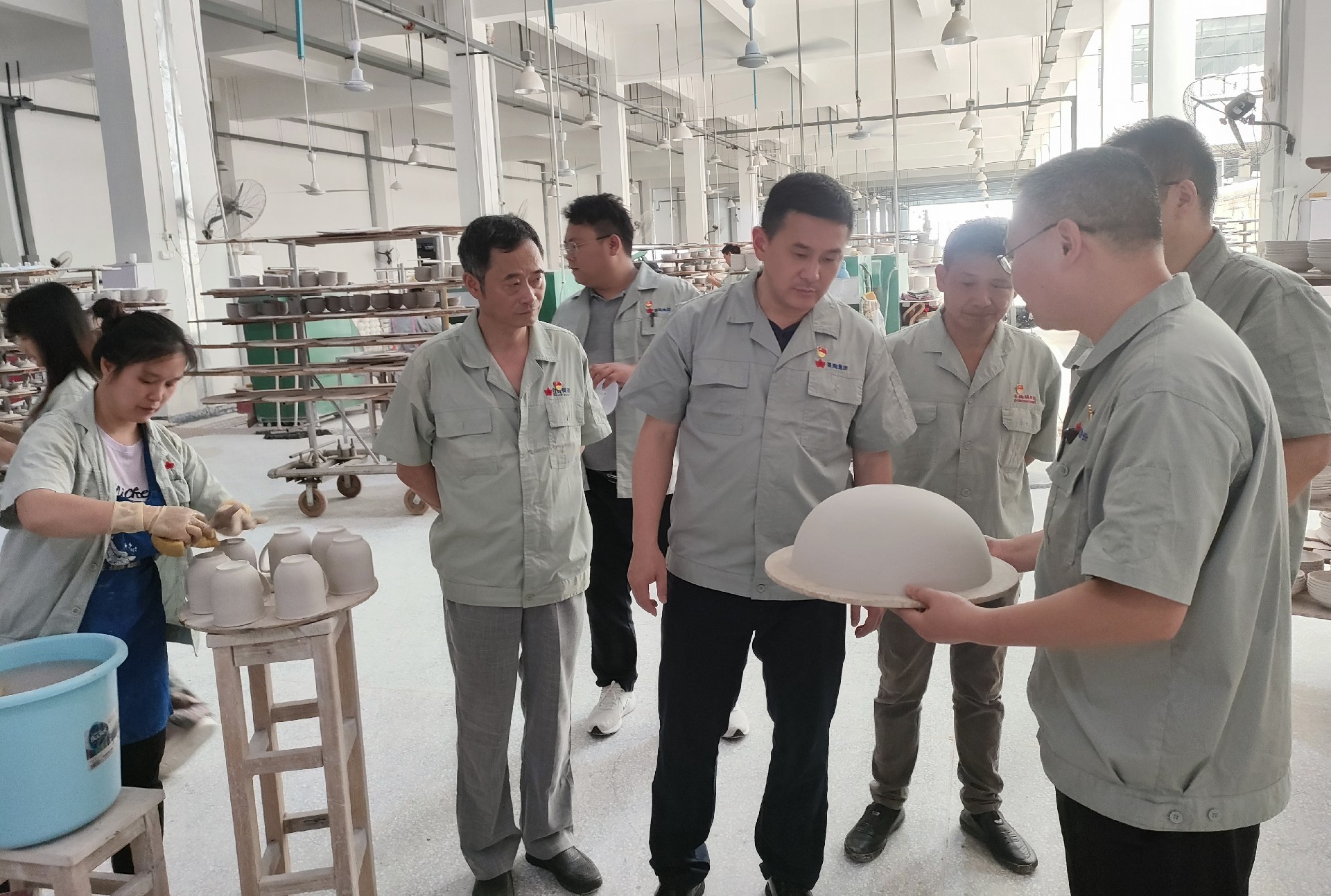 在生產(chǎn)車間調(diào)研中,鄧景揚(yáng)先后下到各個(gè)生產(chǎn)工序現(xiàn)場(chǎng),從原料、模型、成型、燒煉到彩繪車間,對(duì)每個(gè)工序都進(jìn)行了詳細(xì)了解,重點(diǎn)了解了紅葉一廠的整體生產(chǎn)能力及現(xiàn)狀。