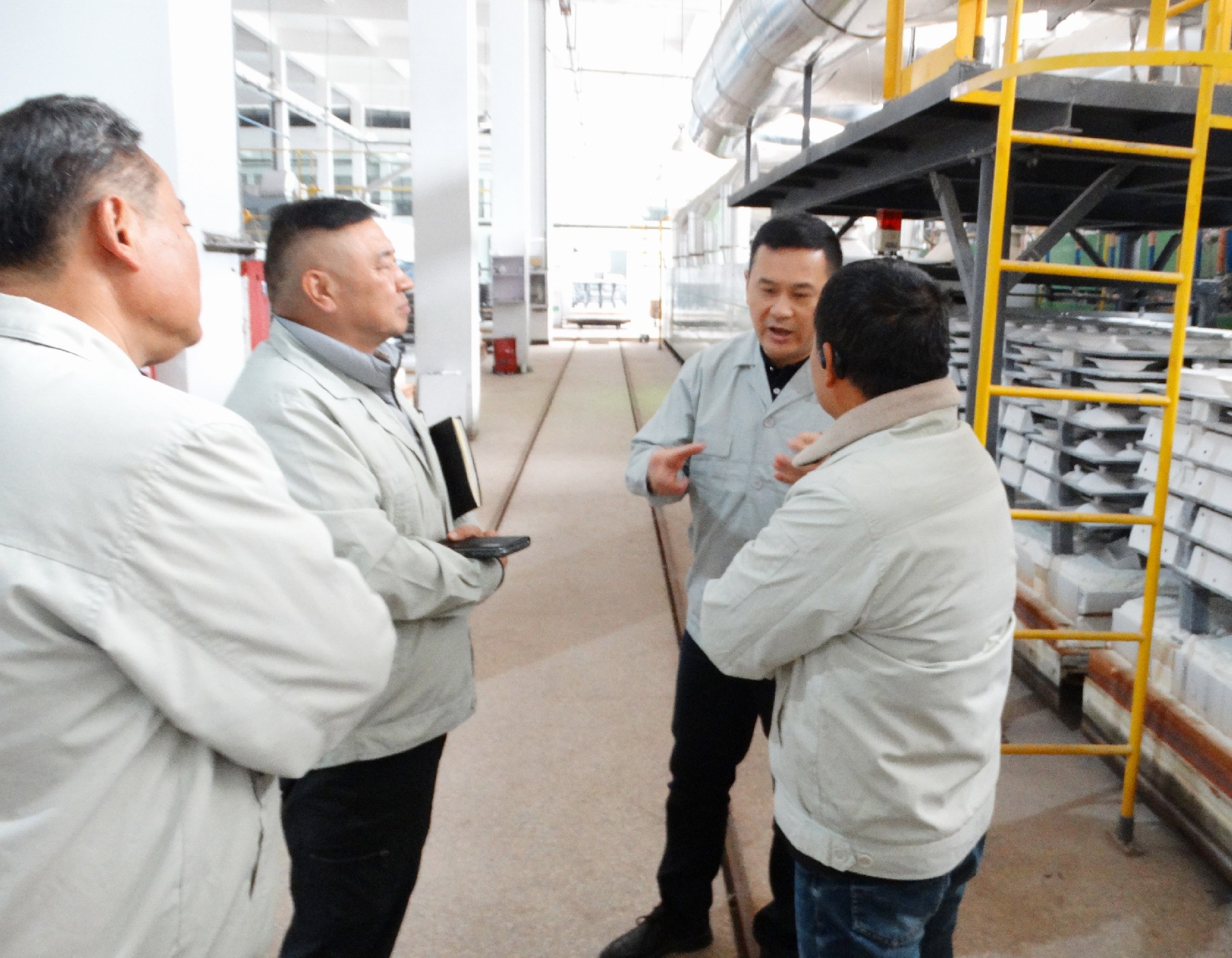 為深入學(xué)習(xí)宣傳貫徹習(xí)近平總書記考察江西重要講話精神,落實(shí)好省委、市委學(xué)習(xí)推廣“四下基層”的有關(guān)要求,進(jìn)一步推動(dòng)集團(tuán)主題教育走深走實(shí)。11月27日,景陶集團(tuán)黨委書記、董事長(zhǎng)鄧景揚(yáng)深入掛點(diǎn)聯(lián)系點(diǎn)紅葉公司一廠開展“四下基層”活動(dòng)。集團(tuán)黨委委員、工會(huì)主席鄧必春、組織人力資源部部長(zhǎng)薛景玉等人隨同,紅葉公司總經(jīng)理章彧、紅葉公司黨總支專職副書記李俊、紅葉公司副總經(jīng)理邱鎮(zhèn)勇、一廠副廠長(zhǎng)劉靈敏陪同。