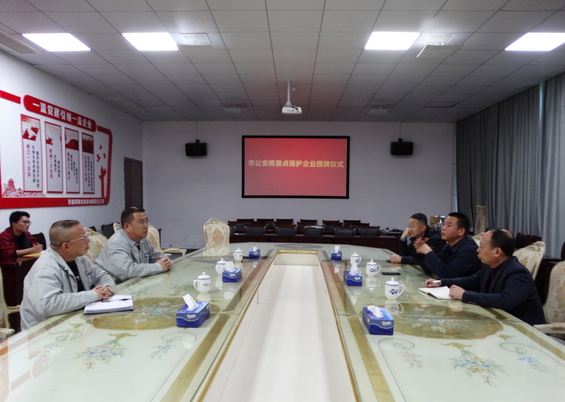 12月1日下午,市公安局在景陶集團一樓會議室舉行重點保護企業授牌儀式。景德鎮市公安局食藥環偵查分局局長周興妙,副局長趙敬展,知識產權大隊長徐廣志出席授牌儀式。景陶集團黨委副書記、總經理邢浩,副總經理袁建國參加授牌儀式。